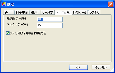 また、先読みデータ数に比べてこの値が大きいとファイルの再読込回数が少なくなる為、負荷が少なくなります。
